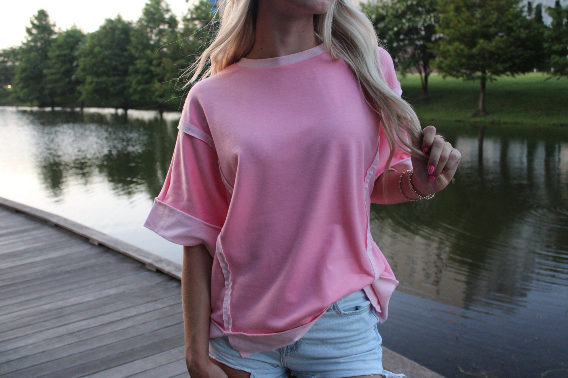 Soft, breathable, and effortlessly pretty — the Petal Breeze top is made from a lightweight cotton-polyester blend that drapes beautifully while offering all-day comfort. Its relaxed silhouette features wide sleeves and subtle satin trim along the sides and arms for a touch of polished charm. The delicate blush pink shade adds a romantic flair, making it perfect for warm days, golden hour photos, or laid-back brunch dates. Style it with denim or neutrals for an easy, elevated look.