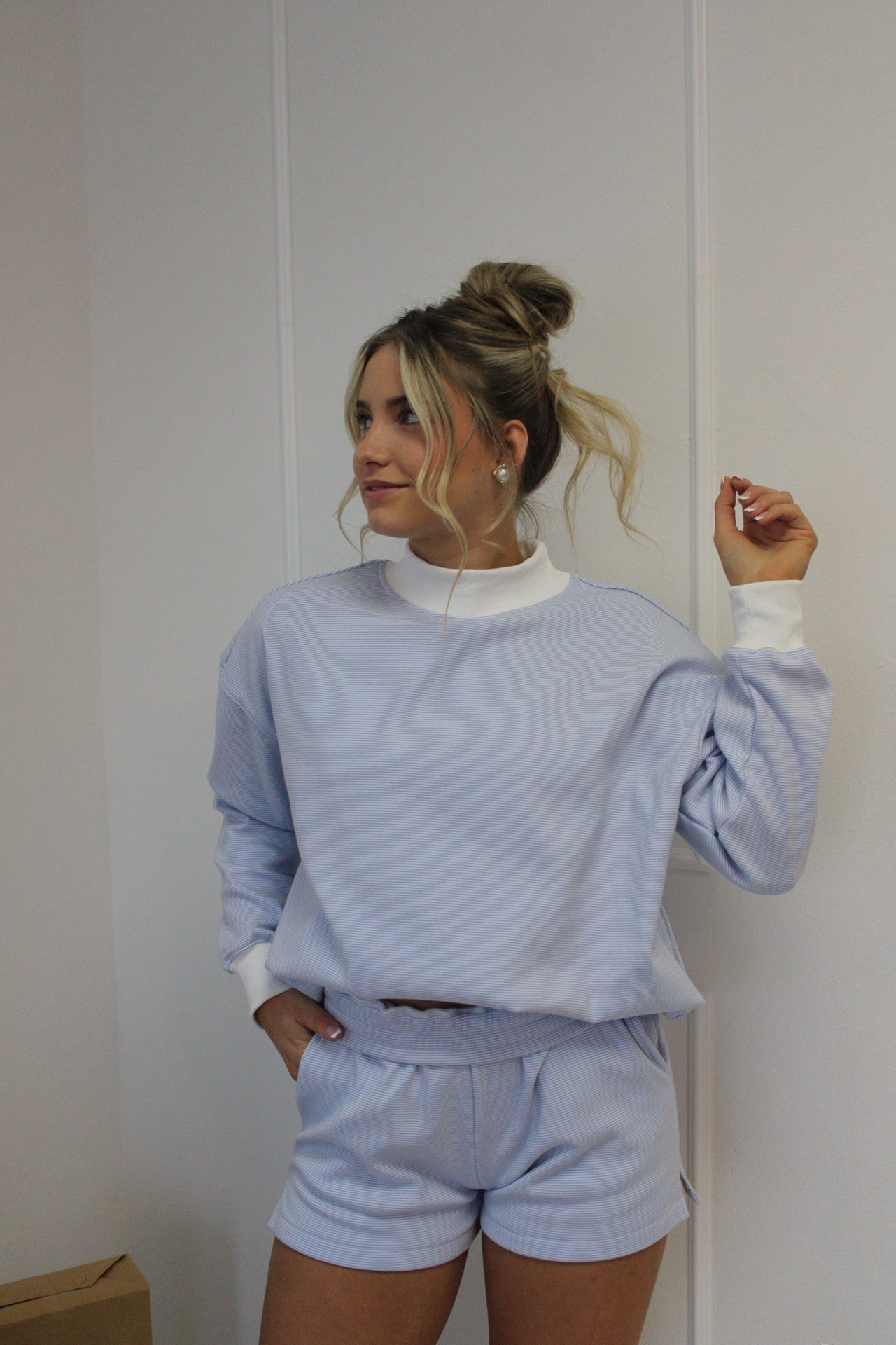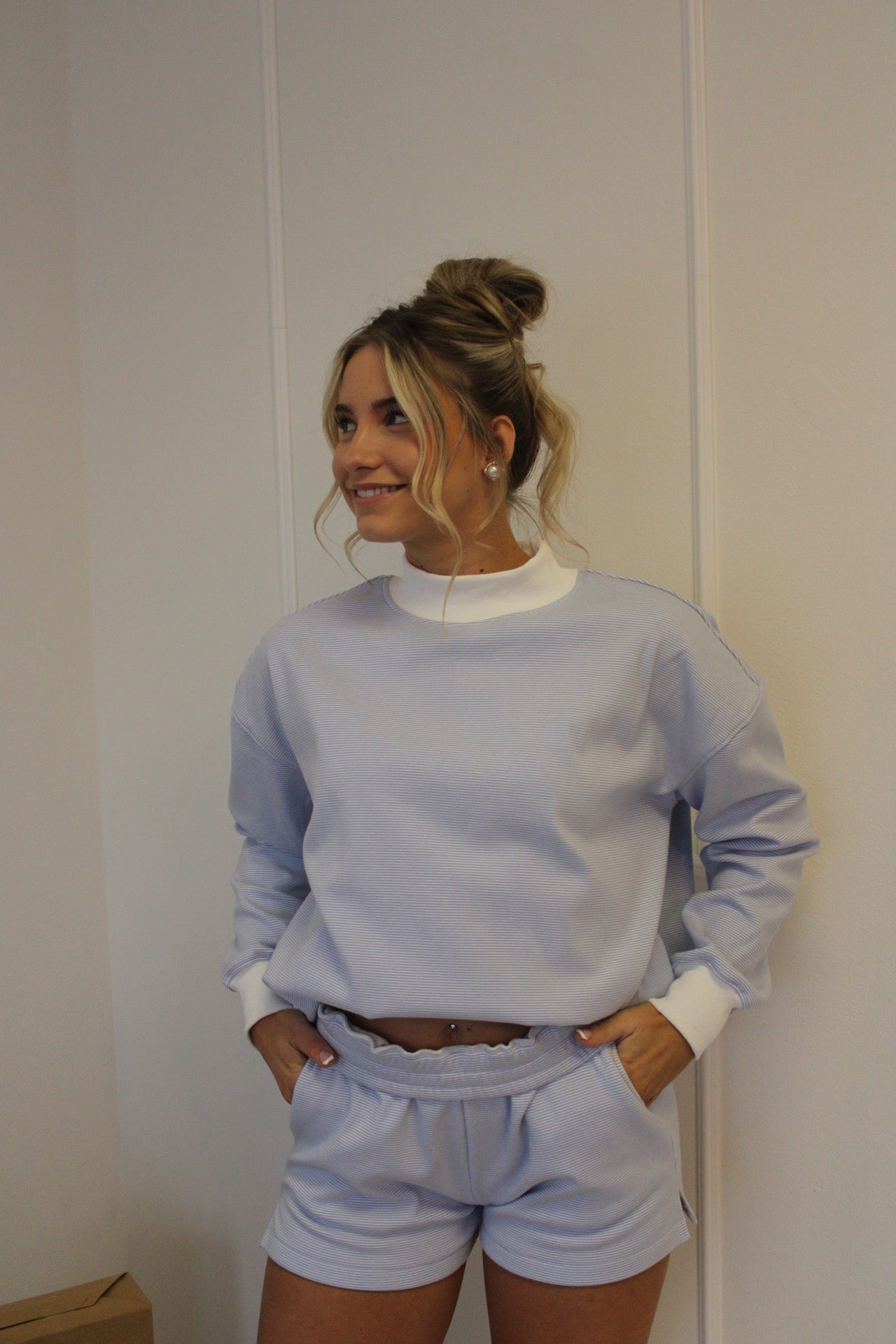Stay cozy and cute in this soft pastel lounge set. Featuring a relaxed fit sweatshirt and matching high-waisted shorts, this set is perfect for everyday comfort, running errands, or relaxing at home. Lightweight, stretchy, and effortless to style.